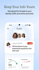 Stay safe online and protect from fraud and scams.Aura is an all-in-one digital safety and protection solution to help keep you safe from identity theft, financial fraud, and online threats. Protect your data and stay ahead of threats. Our award-winning technology¹ provides security & protection by monitoring & alerting if your identity, data, passwords, credit, or financial accounts are at risk. Aura alerts you to credit fraud up to 250x faster than the competition.² Aura's protection & securit